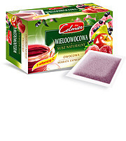 Чай фруктовий полуниця, малина, яблуко, груша, смородина. У пакованні 20 чайних пакетиків.